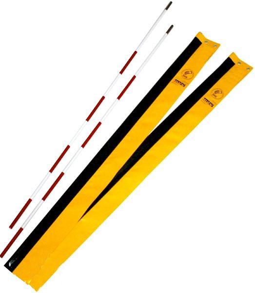 zweiteilige Beachvolleyball-Netzantennen komplett mit gelber Klettverschluss-Haltetasche.