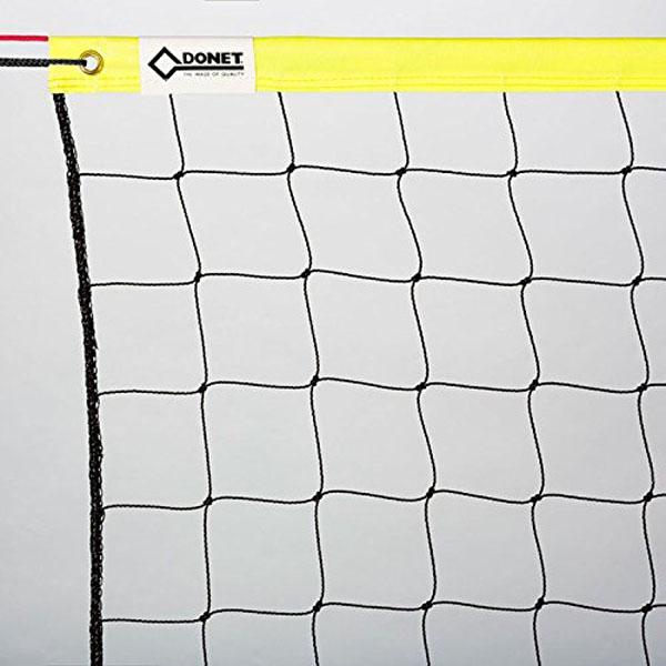 Aus einer ca. 2 mm starken schwarzen Polyethylen-Leine. Oberkante mit neongelber PVC-Einfassung, 50 mm breit. Nylon-Spannseil, 10,70 m lang.