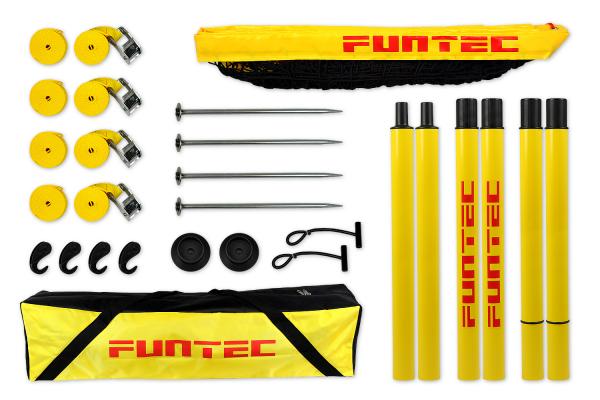 Das Beach Champ Set wird mit dem FUNTEC-Abspannsystem aufgebaut: Die unteren Spannleinen werden direkt zu den Spanngurten geführt. Die Netzpfosten stehen dadurch extrem stabil und die Netzspannung ist perfekt für ein Spiel auf hohem Niveau.