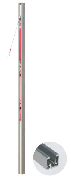 ALU-Volleyball-Pfosten aus stabilem Rechteckprofil 80x80 mm, nach der neuen EN 1271 geprüft und abgenommen. Superstabile Ausführung inkl. Schieber mit innenliegender Rolle und Spannvorrichtung, Kurbel sowie Netzhaken.