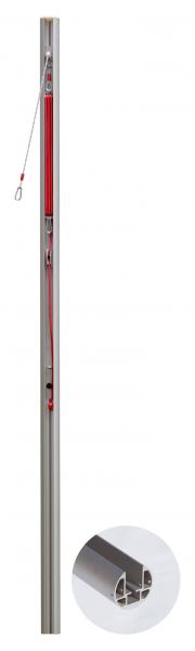 ALU-Volleyball-Pfosten aus stabilem Rundprofil 83 mm d, nach der neuen EN 1271 geprüft und abgenommen. Superstabile Ausführung inkl. Schieber mit innenliegender Rolle und Spannvorrichtung, Kurbel sowie Netzhaken.