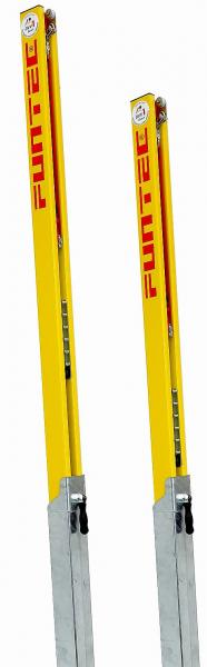 Das Pro Beach Pfostensystem ist eine Kombination aus Netzpfosten und speziellen System-Bodenhülsen. Die Besonderheit dieses Systems: Die Netzhöhenverstellung erfolgt bei voll verspanntem Netz durch Hoch- oder Runterschieben des Netzpfostens in der Bodenhülse, und zwar ohne, dass Spannleinen gelöst werden müssen. Dazu brauchen Sie nur Sekunden und Sie können die Spielhöhe millimetergenau wählen.